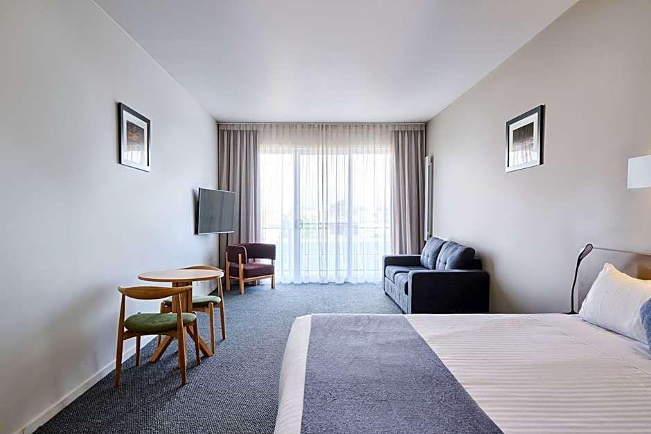 These stylishly appointed King Studios feature a sofa-bed (extra AU $40 per night), refrigerator, microwave, cook top, dishwasher, desk and a flat screen TV with streaming capabilities. Also provided is a washing machine, dryer and Ideology bathroom amenities.